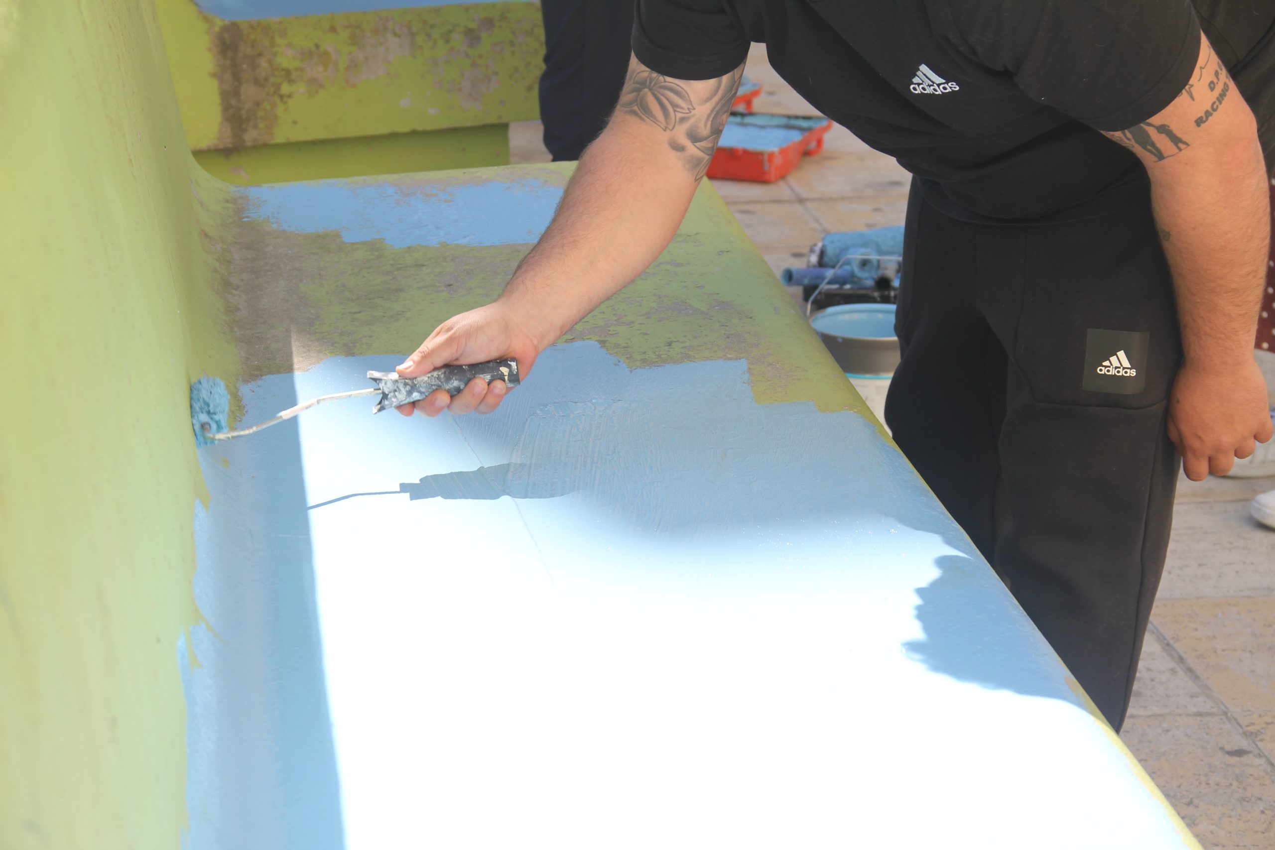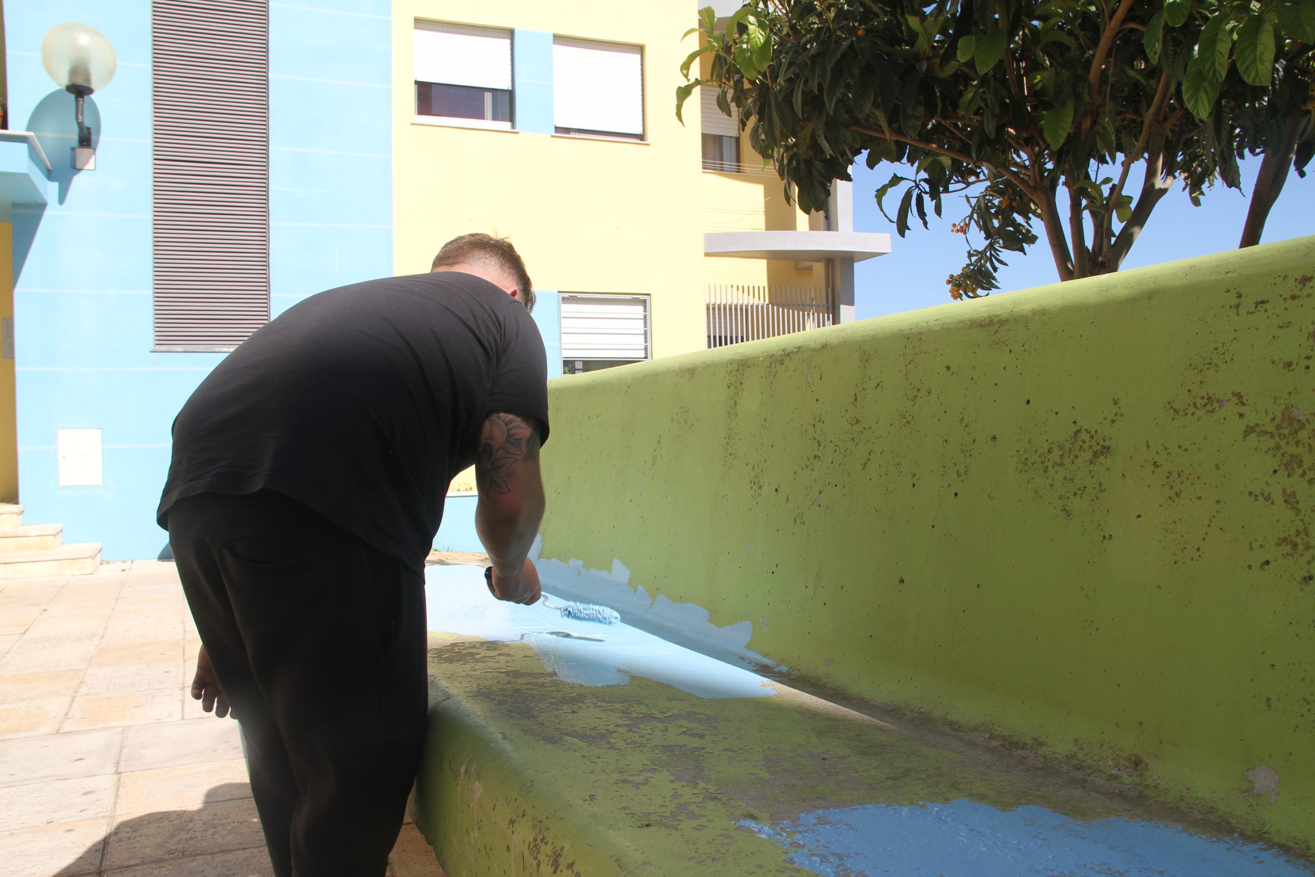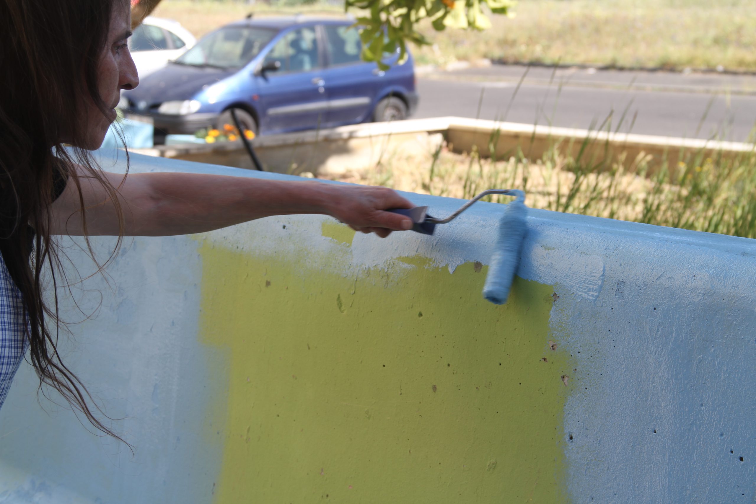 Depois da plantação dos canteiros laterais, da pintura e plantação dos cubos, e da requalificação e plantação do canteiro central, os moradores agarraram tintas e pincéis e pintaram os bancos que há muito pediam uma nova cor, agora a condizer com os últimos trabalhos.